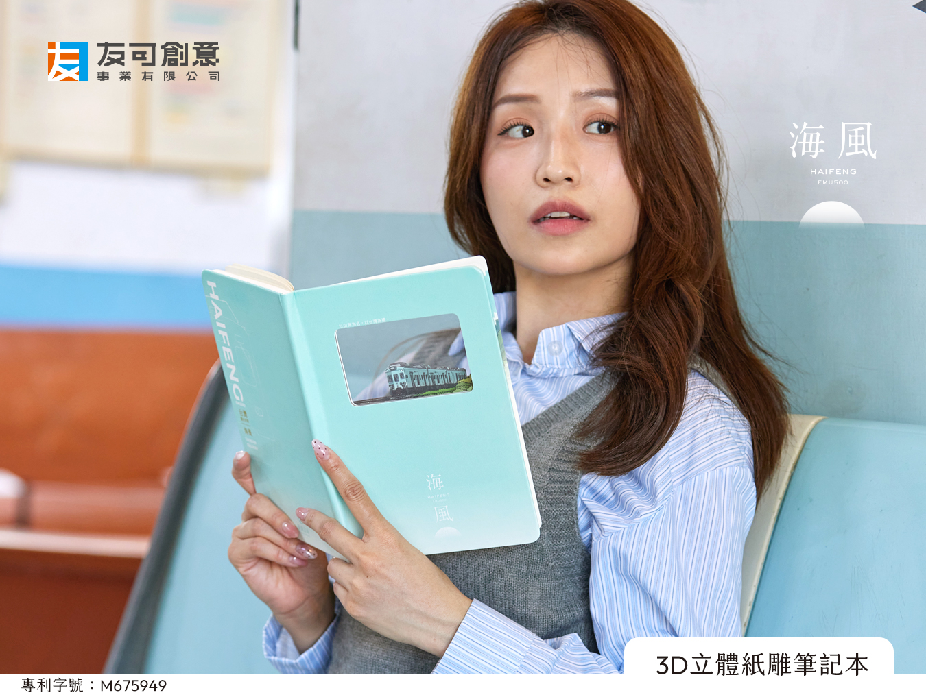 以 EMU500「海風號」為主題打造的 3D 立體紙雕筆記本,以多層紙雕堆疊出海岸線、山巒與列車風景,彷彿把旅途收進手中。